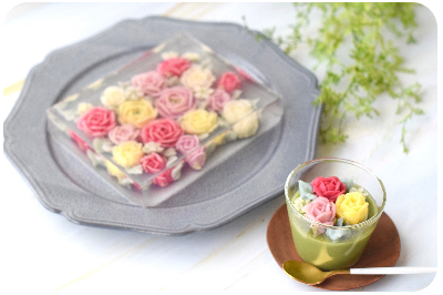 Unlike normal beanpaste flower jelly, by using a specially formulated elastic bean cream, it is possible to make jelly of delicate flowers with less bubbles and turbidity. It can be cut into any shape and size you like, so it's perfect for parties and surprising gifts!