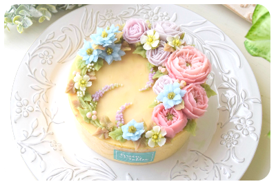 中心部分がより複雑になったお花の絞り方や、アレンジに加えると便利な小花など、様々な絞り方を学ぶ事で表現の幅が広がります。
